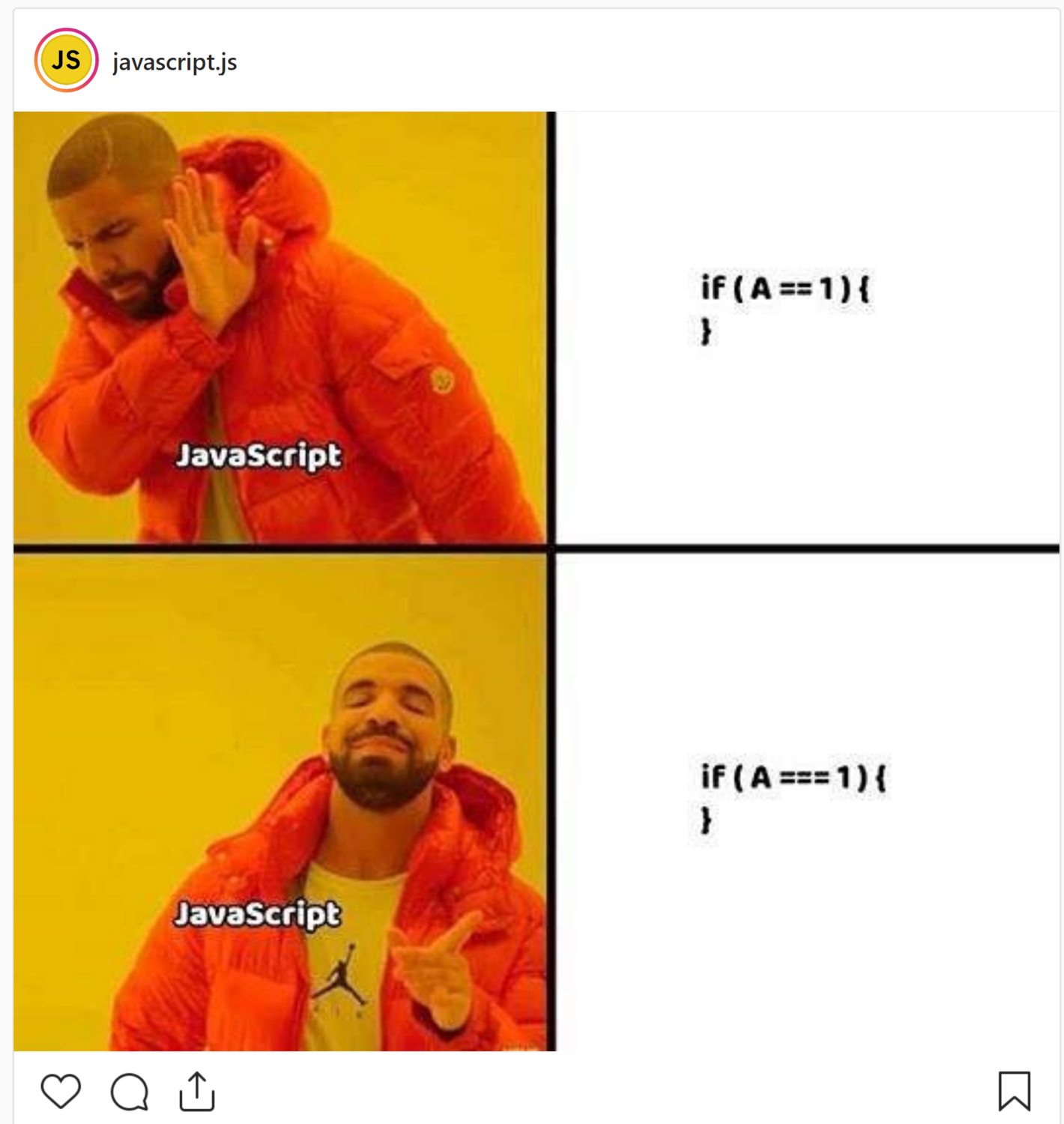 There are two equality operators in JS - TL;DR - always use ===!!!